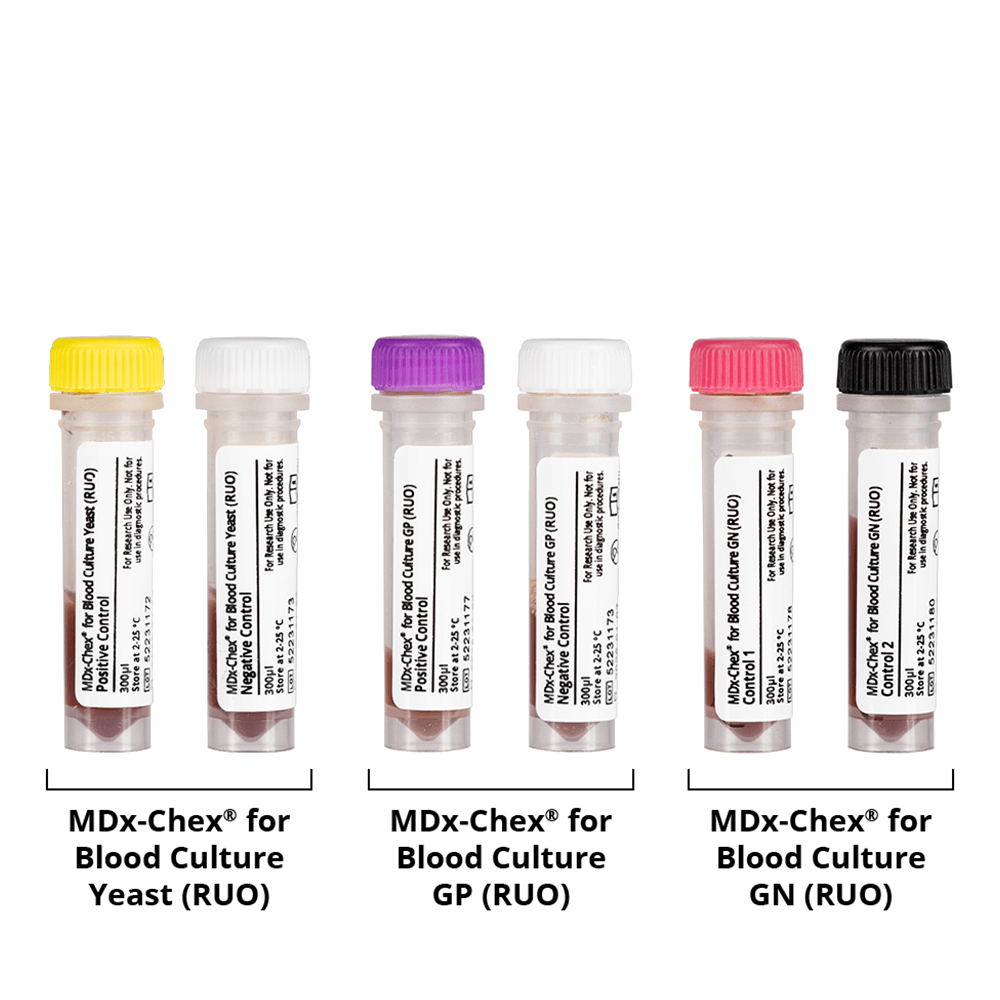 Blood Culture Yeast Verification Kit (RUO), Blood Culture GP Verification Kit (RUO) and Blood Culture GN Verification Kit (RUO) are designed to verify the performance of molecular testing processes that detect the presence of nucleic acids from various yeasts or bacteria. Supplied in single-use vials, these kits can also be used to train and evaluate operator proficiency.