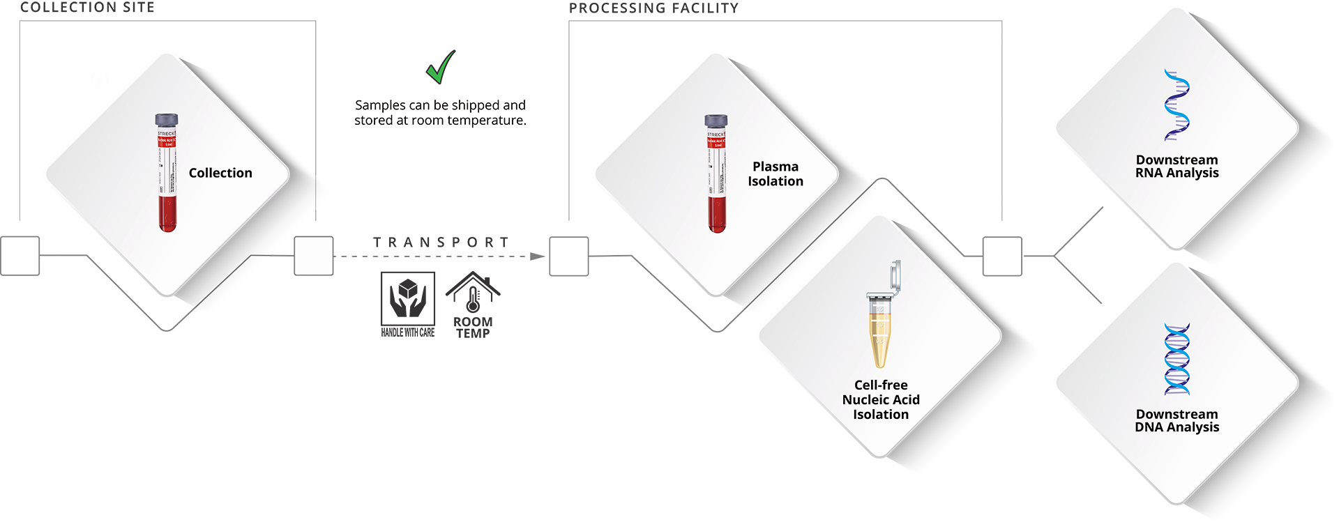 With our patented portfolio of stabilization solutions, you can ship and store samples at room temperature, mitigating pre-analytical variation in critical samples, easing handling concerns and allowing for batch processing.